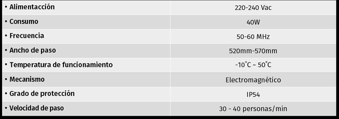• Incluye luz indicadora de paso RGB