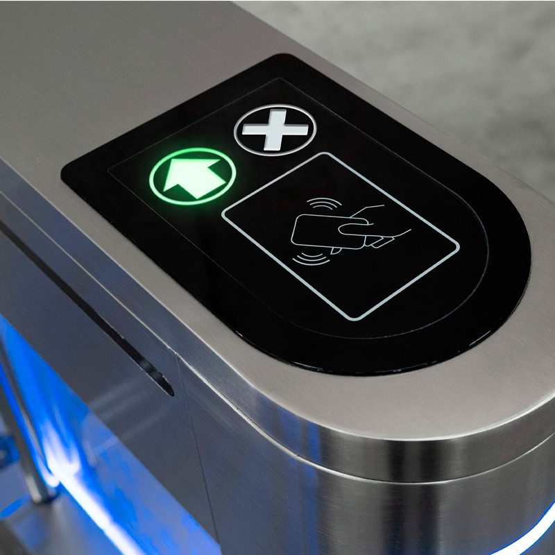 Es un torniquete extremadamente funcional, que permite el control de entradas y salidas a través de varios dispositivos (no incluidos), como tarjetas RFID, impresión digital, reconocimiento facial y códigos de barras.
