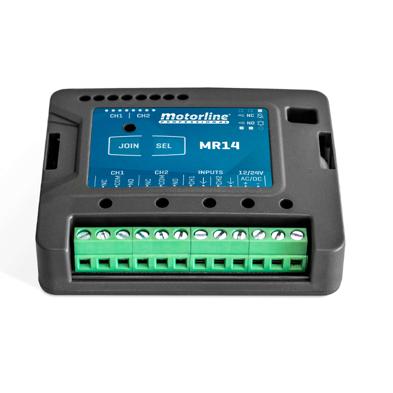 El MX14 es un transmisor que se comunica de forma inalámbrica con el receptor MR14, hasta 100m en campo abierto, alimentado por pilas o pilas recargables por panel solar.