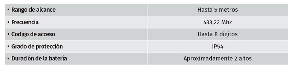 • Se puede abrir hasta dos puertas con el mismo teclado;