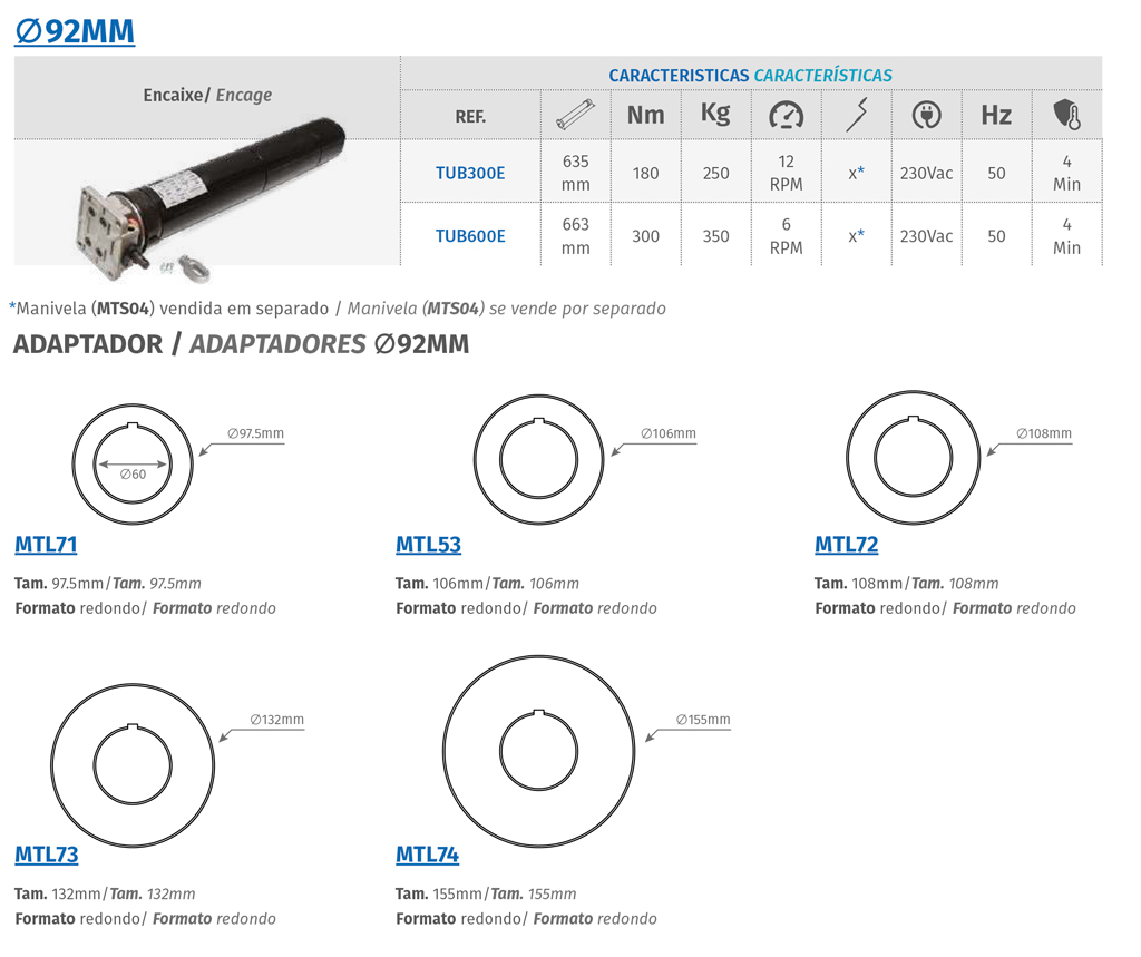 Motor proyectado para persianas y cortinas, interiores o exteriores, permite la aplicación de diversos accesorios para funcionar con todo el tipo de tubos.